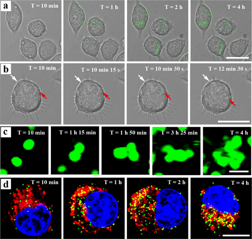 本课题组发现百分之五十的激发光可以通过共聚焦显微镜中二向色镜全反射波长和全透射波长之间狭窄的“cut-on/off”过渡区。利用这一特性,可在共聚焦显微镜荧光通路模式下对胞内纳米颗粒的散射光进行成像分析(散射光成像,SLi)。研究表明,借助于光栅分离波长,可以用不同通道同时收集纳米颗粒的散射光和荧光标记生物分子的荧光信号,从而实现两者的同步观测。SLi成像模式可以分辨胞内20-100纳米不同尺寸的银纳米颗粒(空间分辨率10纳米),并实现胞内纳米颗粒24小时的超长连续观察。该方法可在单颗粒水平研究纳米颗粒的跨膜运输、胞内分布、转化过程以及和生物大分子的相互作用,有望在纳米医学和纳米毒理学研究方面得到广泛应用。