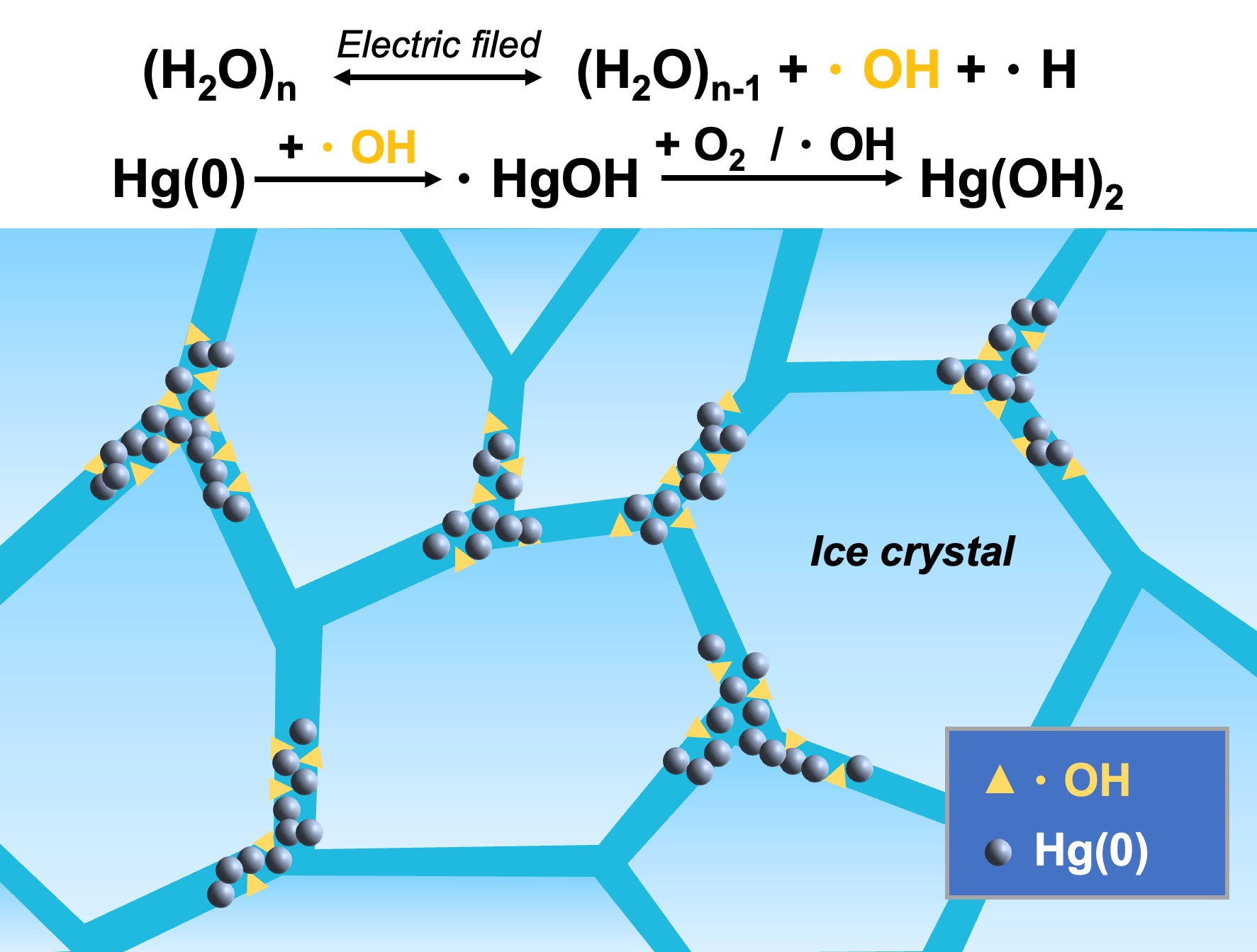 汞作为一种有毒金属污染物,因其具备长距离传输能力导致汞污染在全球范围内广泛分布,甚至在没有明显污染源的偏远寒冷地区(如南北极)也存在显著的汞污染。零价汞(Hg(0))的氧化控制着汞的长距离传输和大气沉降,在其生物地球化学循环中起着重要作用。冻融过程在寒冷地区的大气、地表水以及土壤中广泛存在,然而,目前对环境相关冻融作用对Hg(0)氧化的机制认知有限,阻碍了对汞循环的理解。