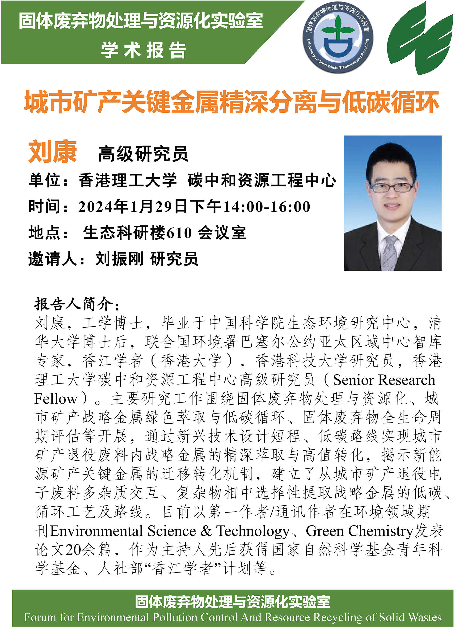 固体废弃物处理与资源化实验室学术报告:城市矿产关键金属精深分离与低碳循环